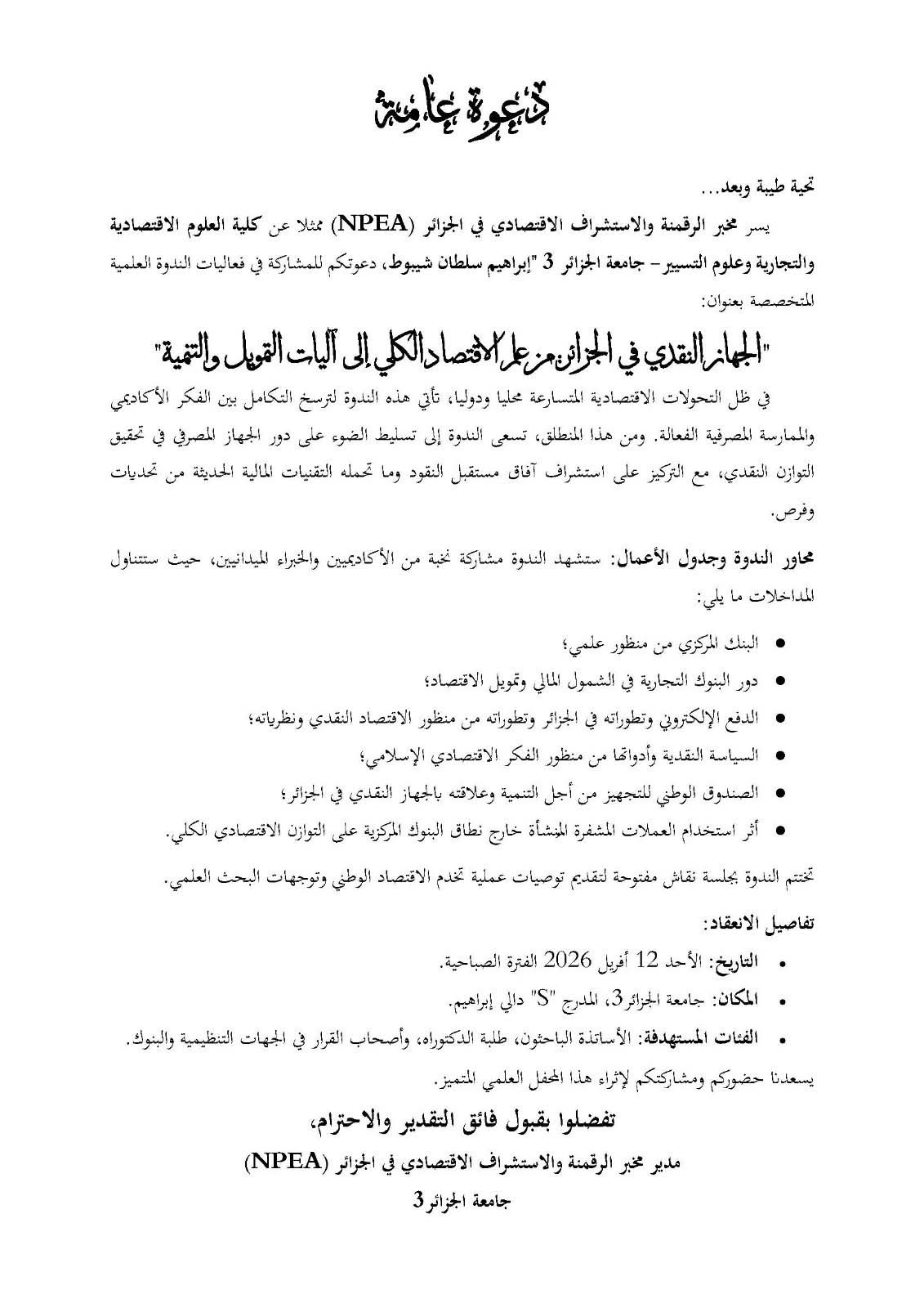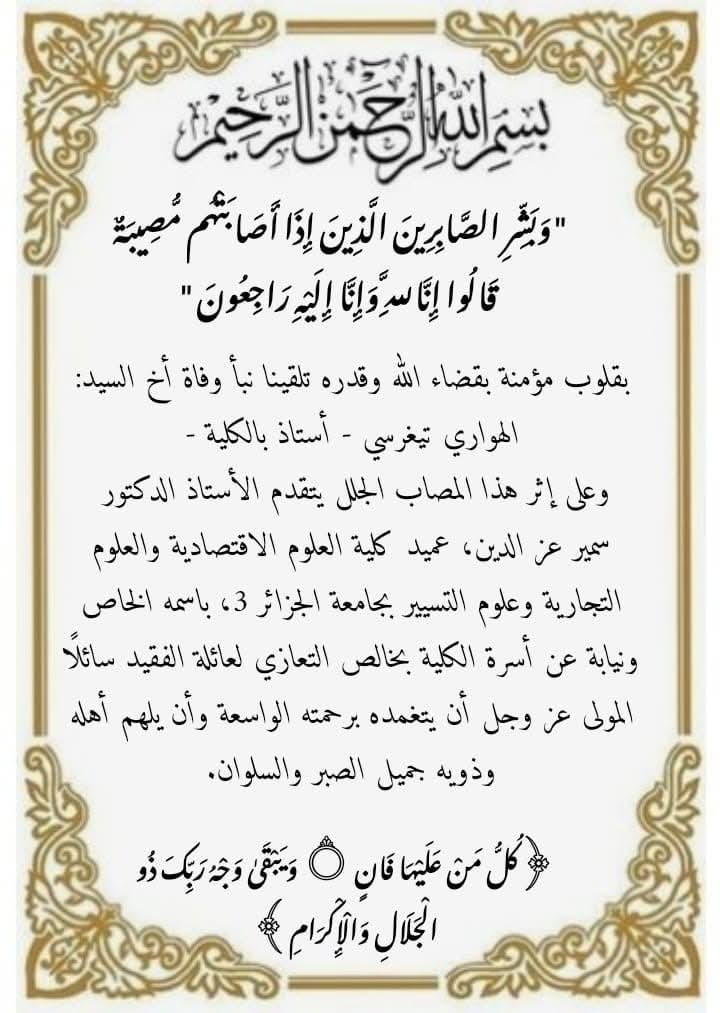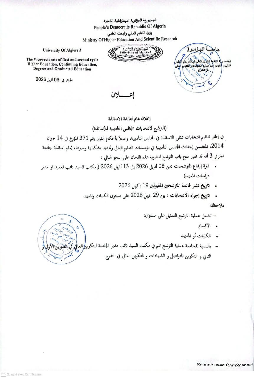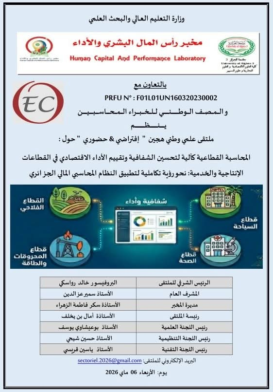 يسرّ مخبر إدارة التغيير في المؤسسة الجزائرية بكلية العلوم الاقتصادية والتجارية وعلوم التسيير – جامعة الجزائر 3، دعوة الباحثين والأكاديميين للمشاركة في استكتاب علمي جماعي...