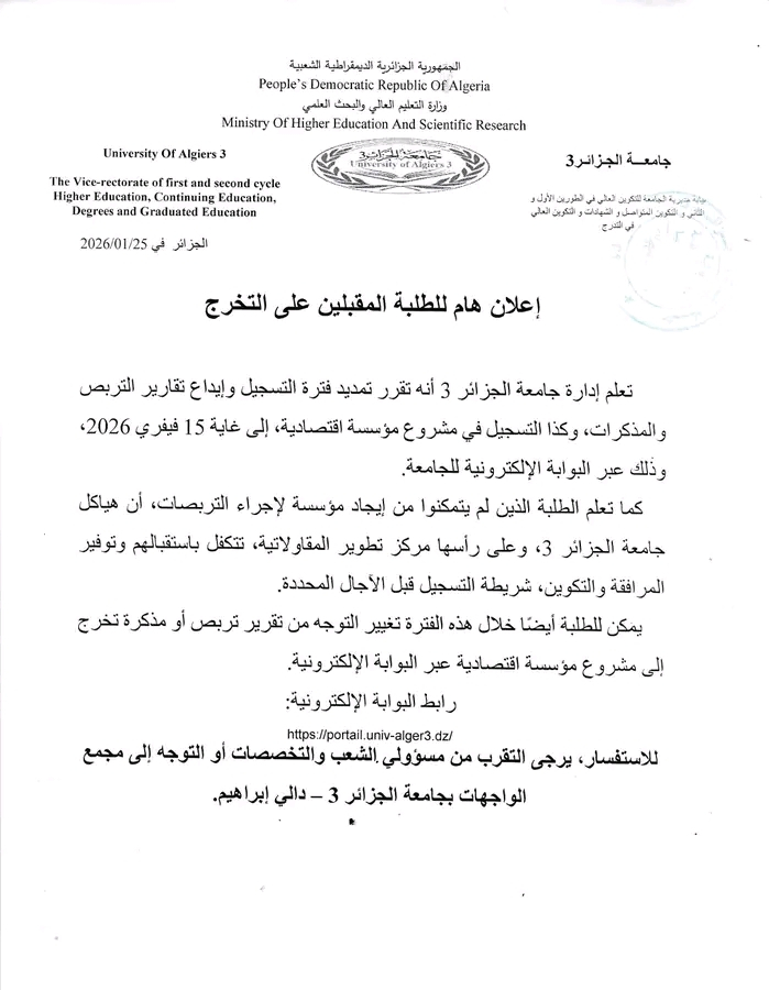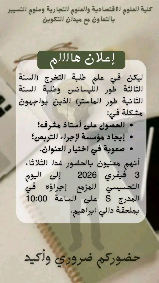 اعلان لفائدة الطلبةالمقبلين على التخرج