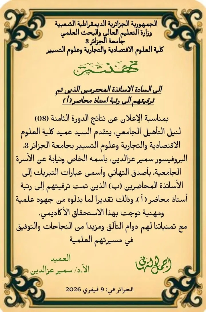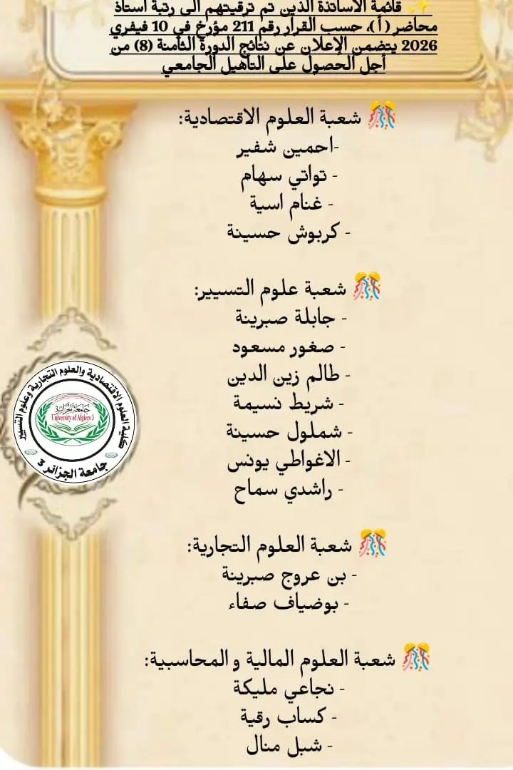 قائمة الاساتذة الذين تم ترقيتهم إلى رتبة استاذ محاضر قسم أ