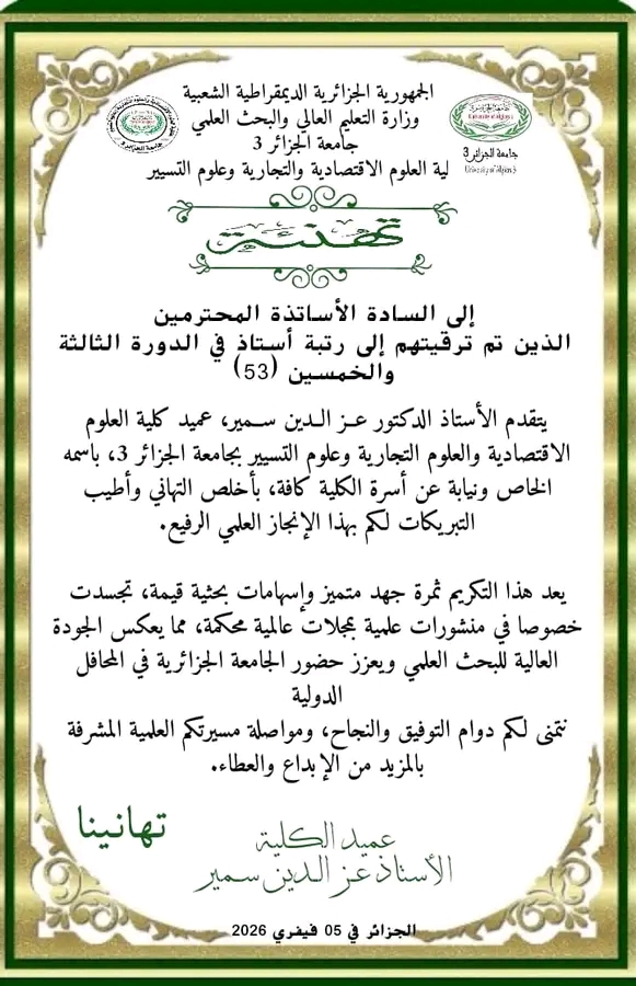 قائمة الاساتذة الذين تم ترقيتهم إلى استاذ في الدورة الثالثة و الخمسين