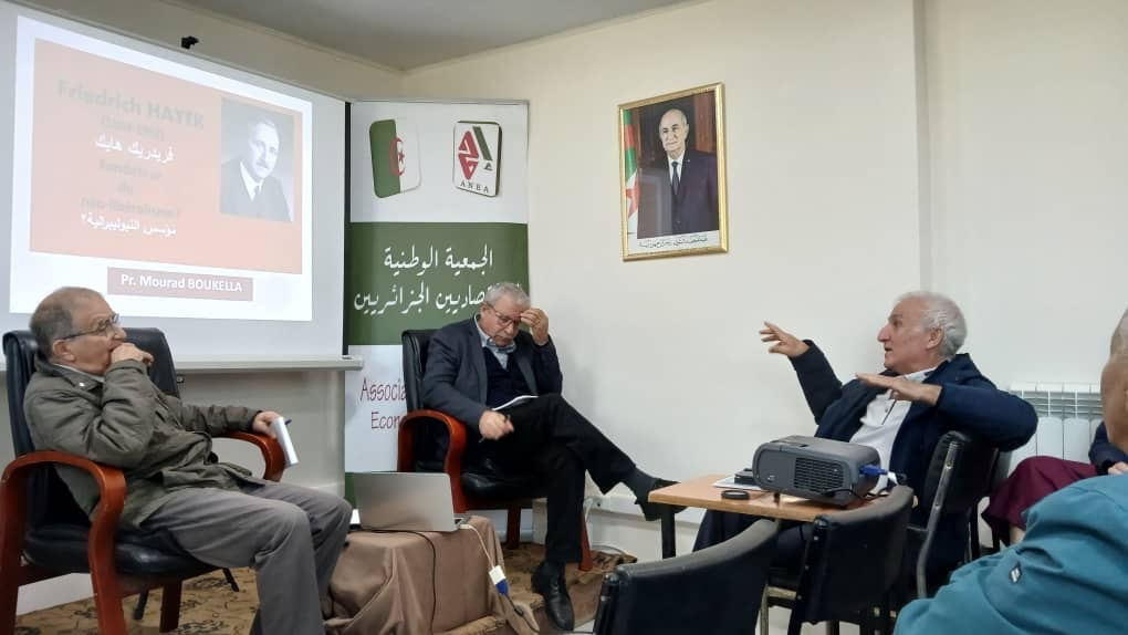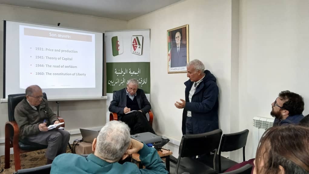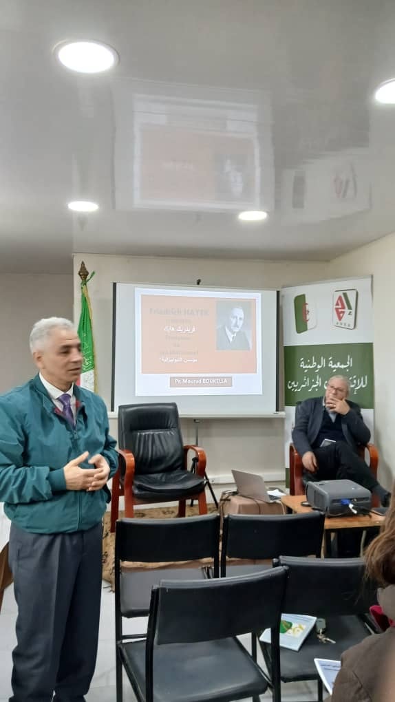 حيث تطرق البروفيسور بوكلة اليوم إلى واحد من أهم المفكرين الاقتصاديين الذين نُسب إليهم تقليديًا تأسيس النيوليبيرالية، وهو *فريدريك هايك*، وأشار أنّ القراءة المتعمقة في أعماله ومساره الفكري تثير تساؤل جوهري في صلب البحث العلمي:
