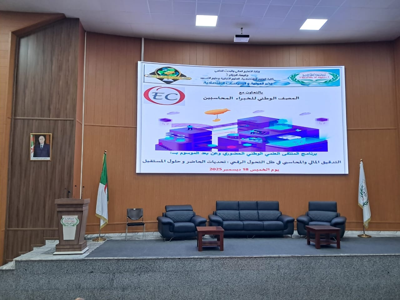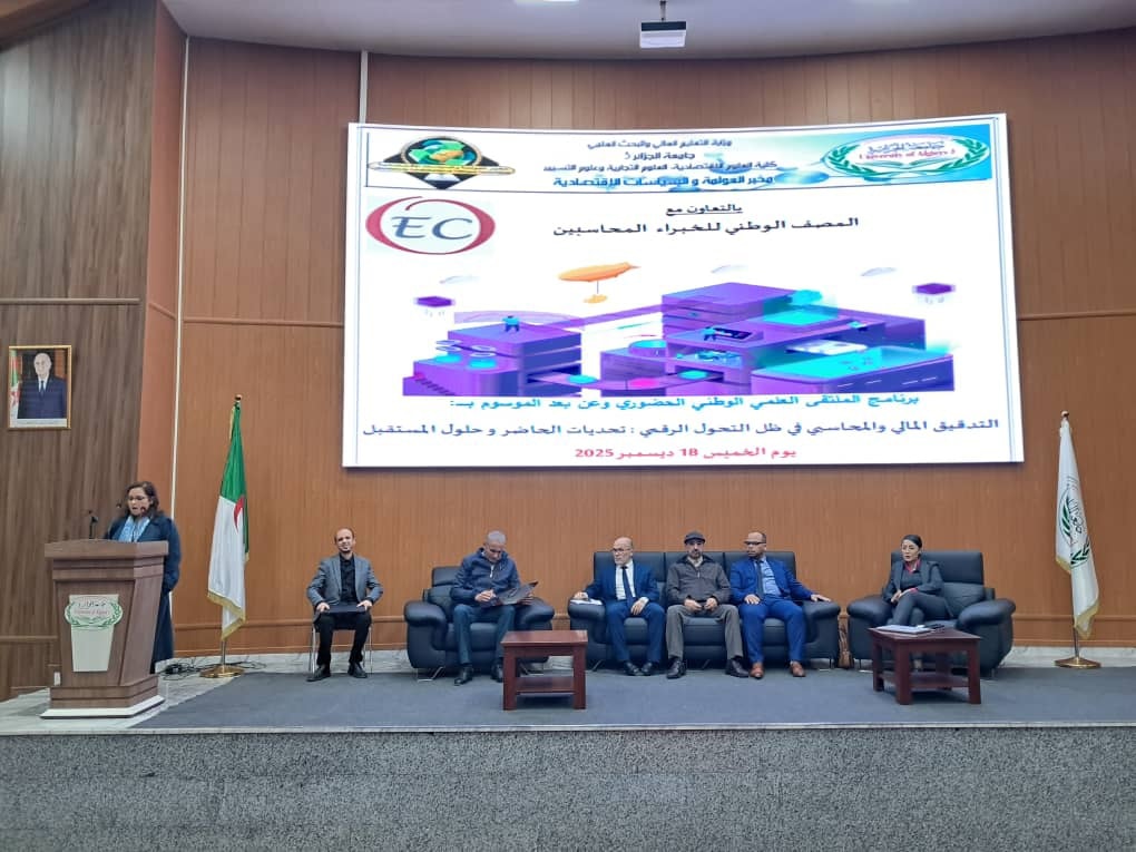 انطلقت صبيحة يوم الخميس 18 ديسمبر 2025، بمقر كلية العلوم الإقتصادية والتجارية وعلوم التسيير بجامعة الجزائر 3، أشغال الملتقى الوطني الهجين حول: “التدقيق المالي والمحاسبي في ظل التحول الرقمي: تحديات الحاضر وحلول المستقبل”، المنظم من طرف مخبر العولمة والسياسات الإقتصادية بالتعاون مع المصف الوطني للخبراء المحاسبين.
