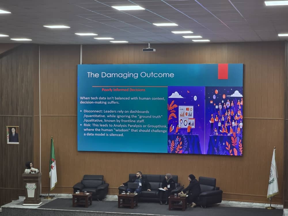 ثم مداخلة للأستاذه موترفي امال بعنوان ““When Humans Become a Strategic Asset: Leveraging Cognitive Capital at the Core of Intelligent Knowledge Management.”