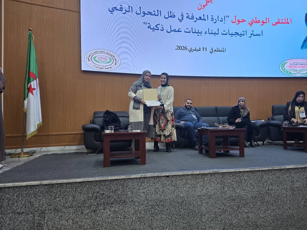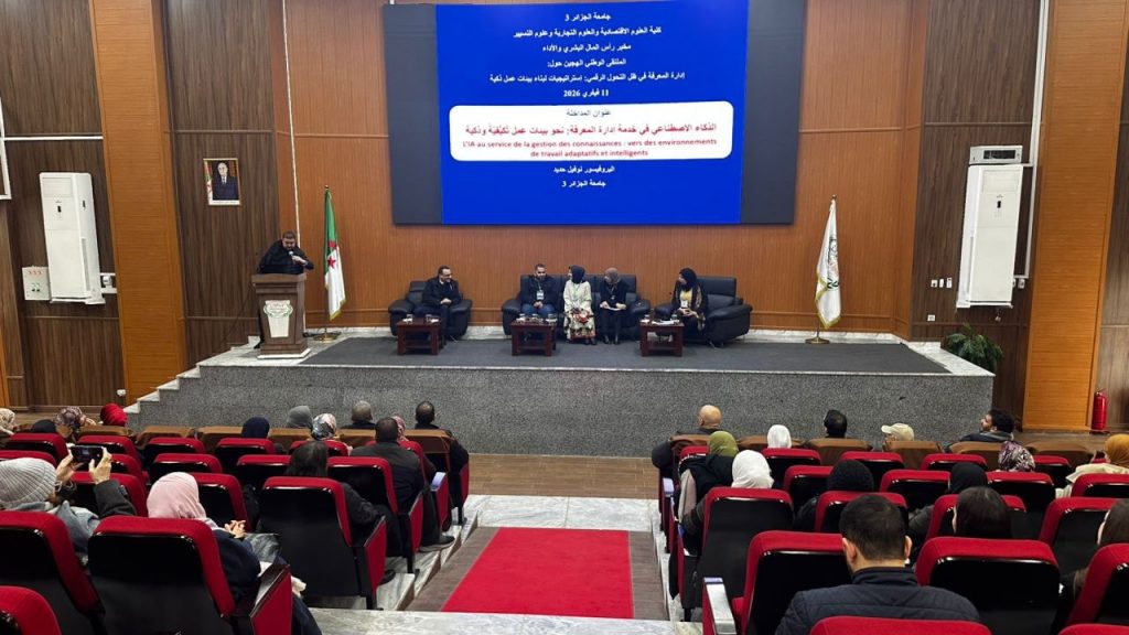 و مداخلة للاستاذ مسوس كمال بعنوان “إدارة المعرفة الرقمية في عصر الذكاء الاصطناعي: من اقتصاد المعرفة الى اقتصاد الادراك.