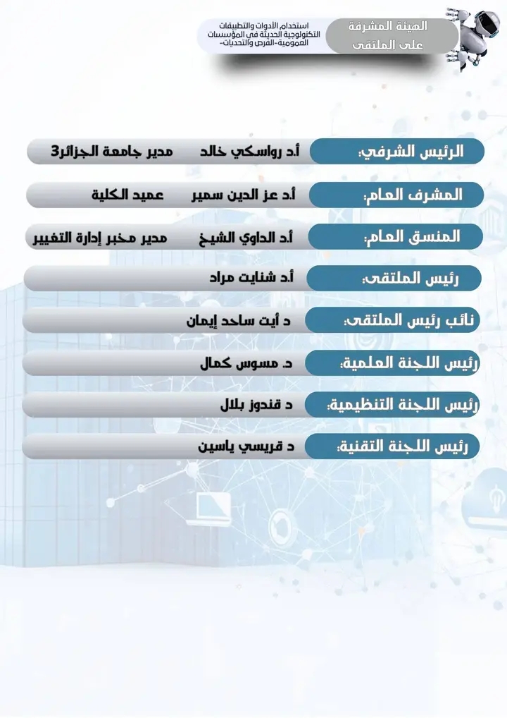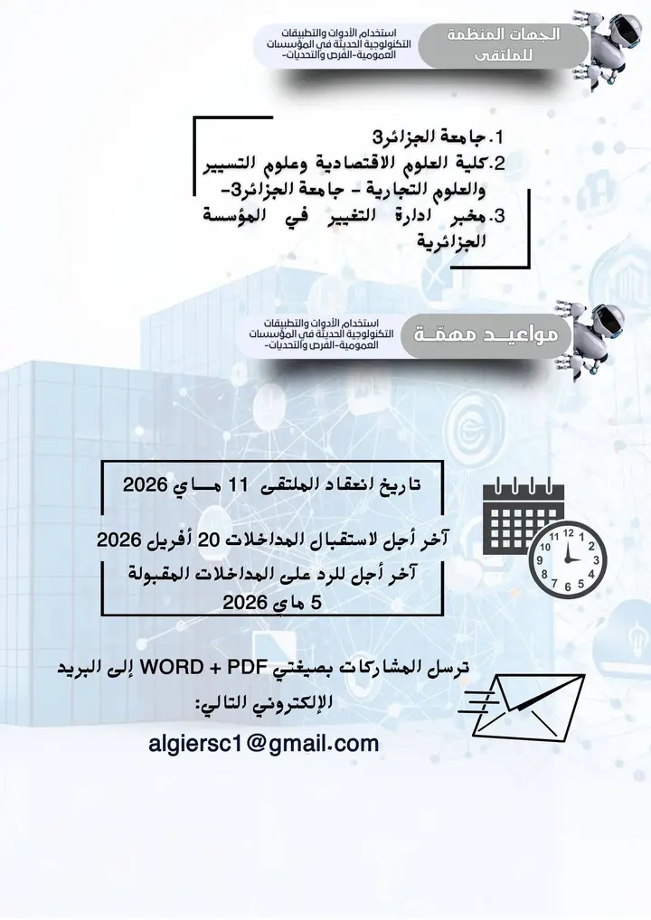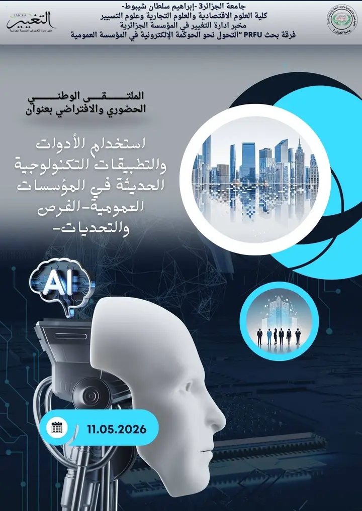 تنظم كلية العلوم الاقتصادية والعلوم التجارية وعلوم التسيير، بالتعاون مع مخبر إدارة التغيير في المؤسسة الجزائرية ملتقى وطني بعنوان :