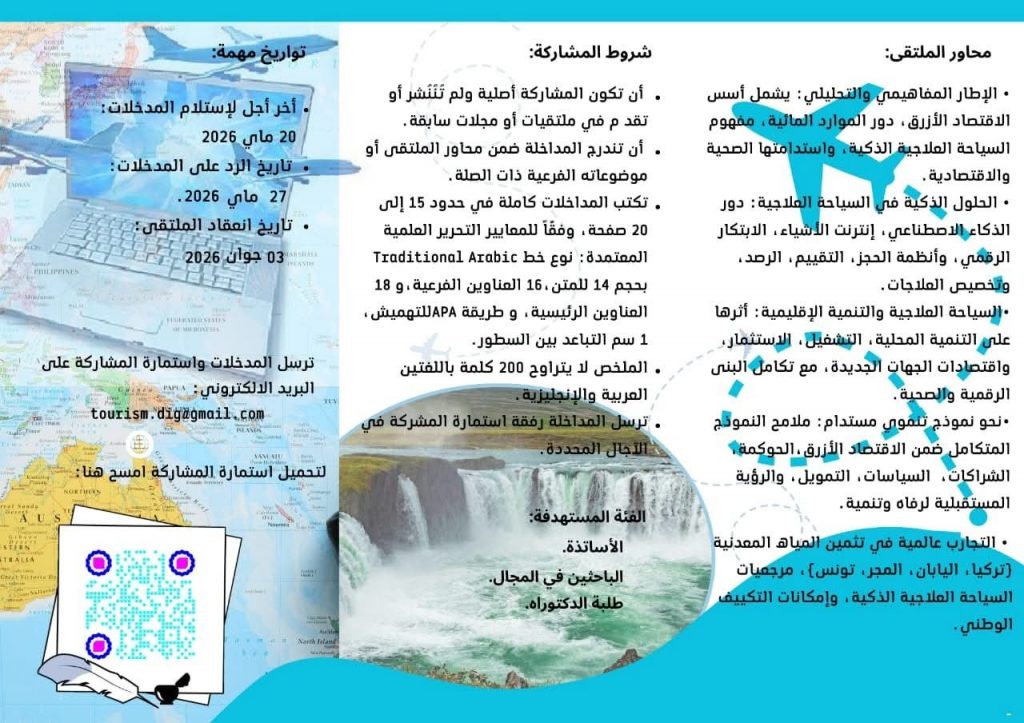 رابط ارسال المداخلات :tourism.dig@gmail.com تصفّح المقالات تعزية انتخابات تجديد المجلس العلمي و اللجان العلمية