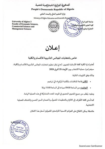 اعلان خاص بانتخابات المجالس التأديبية للكلية والأقسام
