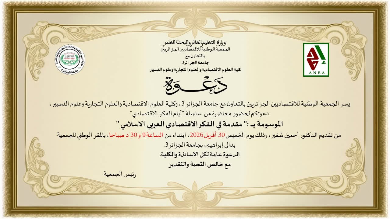 خليةالاعلاموالاتصال دعوة يوم الخميس: 30 أفريل 2026المكان: المقر الوطني للجمعية بدالي ابراهيم تصفّح المقالات انتخابات المجلس العلمي دعوة عامة